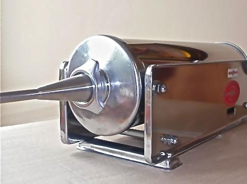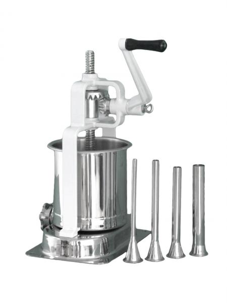 Ręczna maszynka nadziewarka - idealne urządzenie do produkcji wędlin, przeznaczonym dla małych masarni, sklepów mięsnych i gospodarstw domowych. Nadziewarki umożliwiają produkcję szerokiego asortymentu kiełbas, od kabanosów po salami w zależności od wielkości lejka.