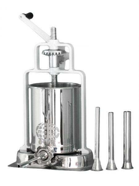 Proste, wygodne i bardzo ekonomiczne rozwiązanie do rozpoczęcia produkcji kiełbas. Nadziewarka dzięki odpowiedniemu tłokowi z uszczelką oraz zaworem odpowietrzającym zapobiega wydostaniu się farszu w trakcie nadziewania. Możliwość wyposażenia urządzenia w lej plastikowy lub nierdzewny.