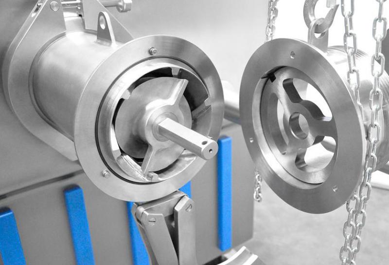 Wilki do szybkiego mielenia serii PSS SG to wszechstronne i uniwersalne maszyny, zaprojektowane do szybkiego mielenia każdego rodzaju świeżego mięsa i innych produktów spożywczych. PSS SG pozwalają na grube i bardzo drobne mielenie, zapewniając najwyższa jakość produktu końcowego. Wilki gwarantują efektywność i praktyczność aplikacji z zachowaniem wysokiej wydajności. Świeże mięso, przygotowane do procesu mielenia, załadowane do komory PSS SG, przechodzi poprzez ślimak w kierunku zestawu tnącego. Struktura produktu finalnego zależy od użytego zestawu tnącego. Jakość systemu mielącego PSS zapewnia gładkie cięcie z minimalizacją zużycia podzespołów i gwarantuje otrzymanie produktu najwyższej jakości.